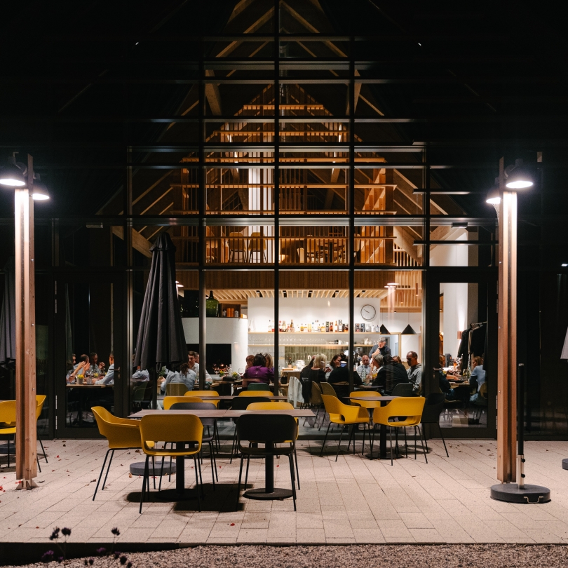 The dining room itself reflects our philosophy: it is located in a contemporary building designed in respectful dialogue with the architectural heritage of the Karst landscape. Natural materials, stone accents, and wooden elements create a sense of warmth, while candlelight gently dances across carefully set tables. Views of our garden and the surrounding Karst countryside frame each meal in natural beauty.